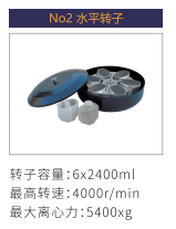 NO2 | 水平轉子 | 6×2400ml | 4000r/min | 5400xg |